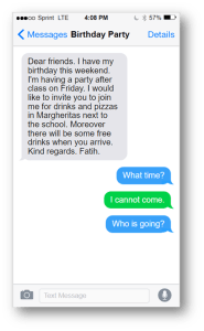 Text Messages: making & discussing plans (using the present continuous)